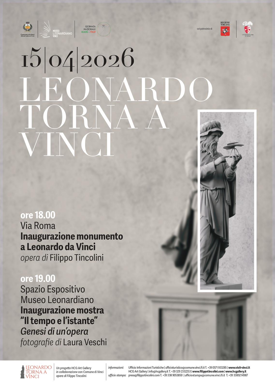 Lo ribadisce anche il sindaco di Vinci Daniele Vanni, sindaco di Vinci: “Il 15 aprile è il giorno in cui la nostra comunità rinnova il proprio legame con il Genio Universale. L’inaugurazione del monumento realizzato da Filippo Tincolini rappresenta un momento di grande valore simbolico per Vinci. Non si tratta soltanto di accogliere una nuova opera d’arte nello spazio pubblico, ma di dare forma a una riflessione viva e condivisa su ciò che Leonardo rappresenta oggi per il mondo.