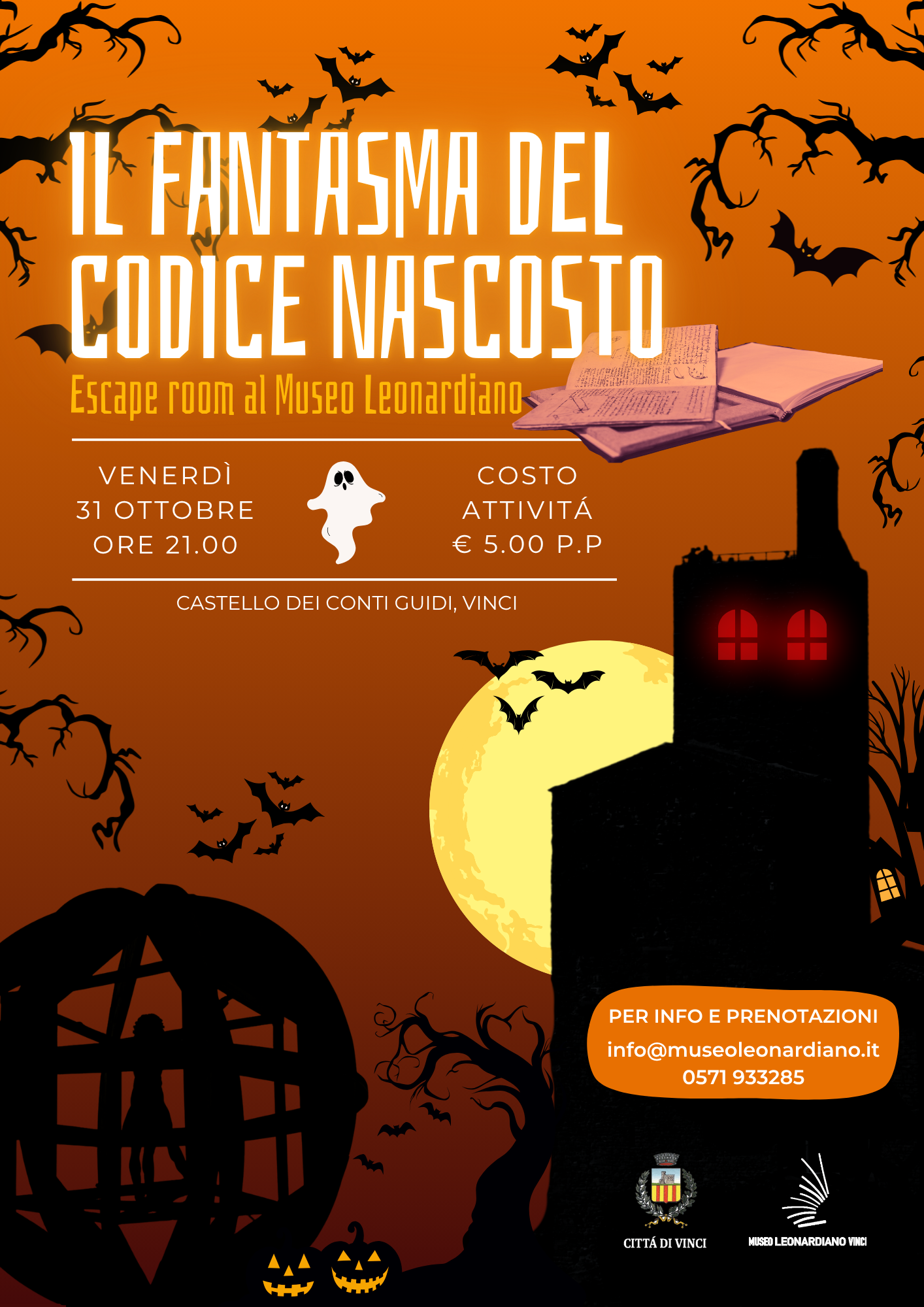 Nella notte di Halloween, il Castello dei Conti Guidi apre eccezionalmente le sue porte per un’esperienza inedita e avvincente. Le antiche sale del Museo Leonardiano diventano il teatro di un gioco di mistero, logica e avventura: un’escape room notturna tra enigmi, indizi e atmosfere da brivido.